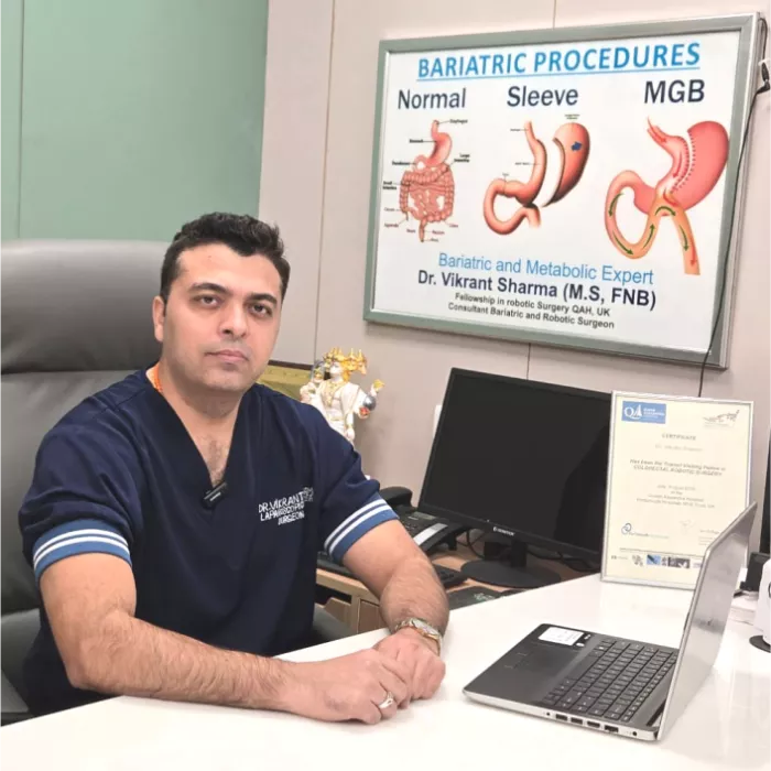 Dr. Vikrant Sharma is a pioneering Robotic and Bariatric Surgeon, heading the advanced surgical services at Meenakshi Hospital, Ghaziabad. An expert in minimally invasive and robotic techniques, Dr. Vikrant Sharma offers highly specialized care in bariatric (weight loss) surgery, metabolic procedures, hernia repair, gynecological oncology, and complex cancer surgeries.